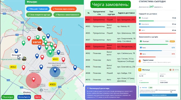 «Команда магістрів продемонструвала глибоке розуміння логістичних процесів і системний підхід до побудови моделі доставки. Особливо хочу відзначити чудово розроблену матрицю розподілу замовлень між пішими, мото- та автокур’єрами, що чітко відображає логіку оптимального вибору транспорту залежно від типу товару, відстані та умов доставки.