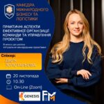 Запрошуємо студентів на відкрити лекцію, яку пропустити неможливо! 20 листопада о 10:30 у межах дисципліни «Управління міжнародними проєктами» відбудеться зустріч із топ-менеджером міжнародної продуктово-технологічної компанії GENESIS.… Read more: Як створювати сильні міжнародні команди та керувати проєктами на глобальному рівні? - Кафедра міжнародного бізнесу та логістики розширює партнерство з оборонною індустрією
